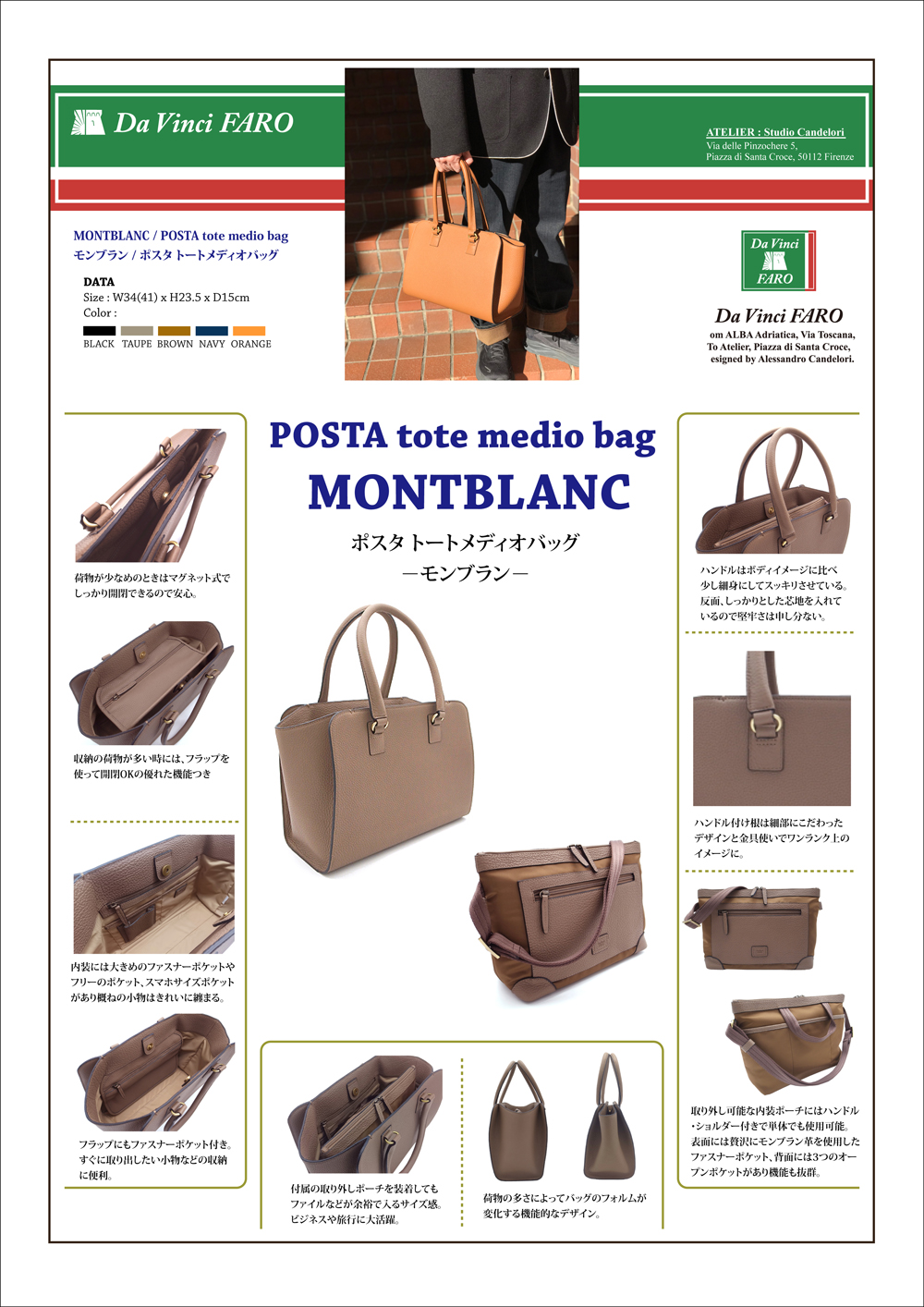 | Art/Style No. : | [Da Vinci FARO / MONT-BLANC / POSTA Medio Tote bag ] our No. DFL-74963 |